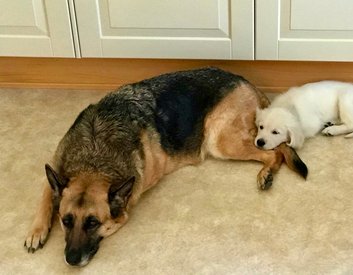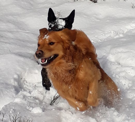 Här kommer några bilder på våra Goldenkillar. Halvsyskon är dom och båda gillar att träna Nosework och Viltspår.